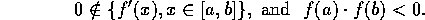 return ( Sup( f(Inf(x))*f(Sup(x)) ) < 0.0 && !(0.0 <= deriv(x)) );