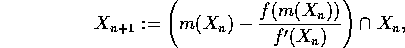 y = (mid(y)-f(mid(y))/deriv(y)) & y; // Iteration formula