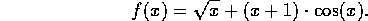 return (1.0 / (2.0 * sqrt(x)) + cos(x) - (x+1.0) * sin(x));